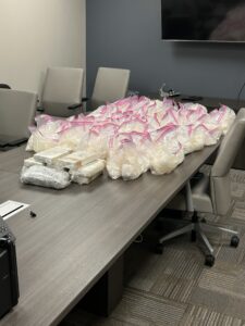 Hasta la fecha, los agentes han incautado 7,100 libras de marihuana, 336 libras de metanfetamina, casi 25 libras de cocaína, 7 libras de fentanilo en polvo, 4,704 pastillas mezcladas con fentanilo, $22,512 en ganancias de la droga y 12 armas de fuego.