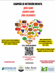 El Colegio Comunitario de Klamath (KCC) se complace en anunciar una serie gratuita de cuatro partes de conferencias presenciales y virtuales centradas en la nutrición infantil, que comenzará el 7 de octubre.