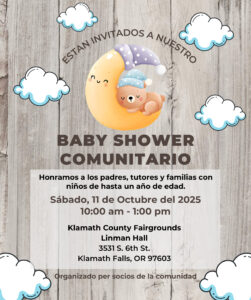 Sábado, 11 de octubre de 2025 10:00 a. m. a 1:00 p. m., Recinto Ferial del Condado de Klamath en el Salón Linman, 3551 S. 6th St., Klamath Falls, OR 97603