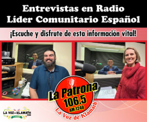 Recinto Ferial del Condado de Klamath, en el Salón Linman. El evento se presenta en inglés y español.