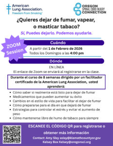 Aprenda a dejar de fumar, vapear o masticar tabaco con la sesión en línea de Zoom del Departamento de Salud del Condado de Klamath y la Asociación Americana del Pulmón