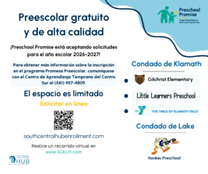 ¡Hola! Preschool Promise está aceptando solicitudes para el año escolar 2026-2027 en el condado de Klamath.